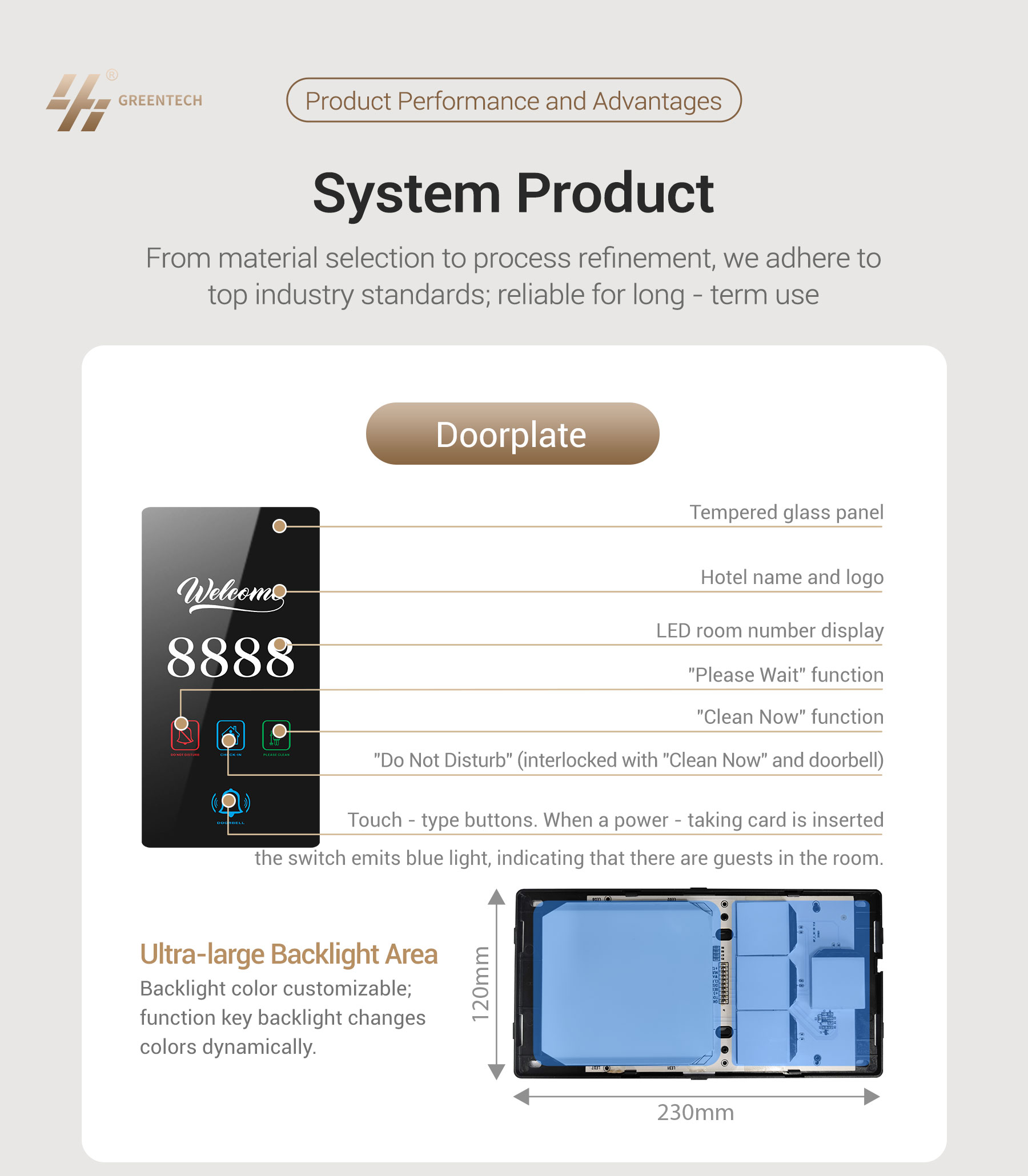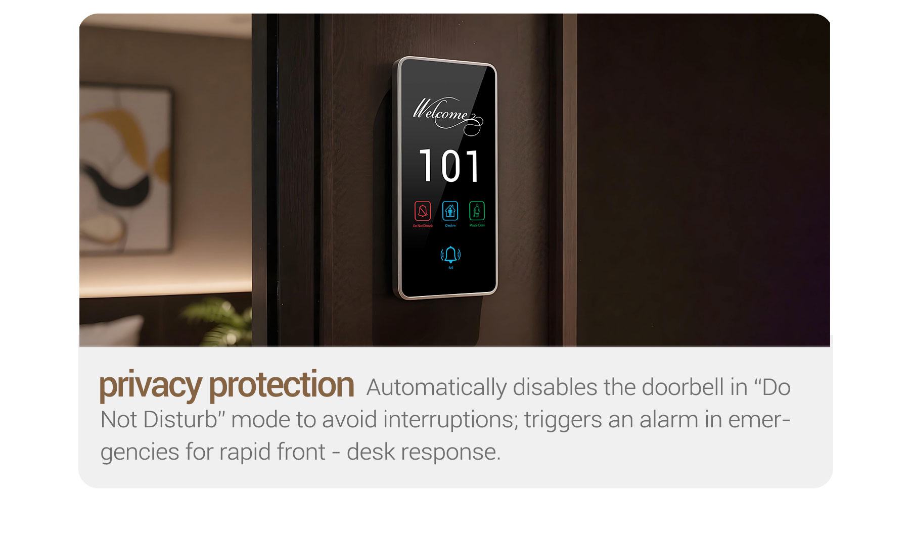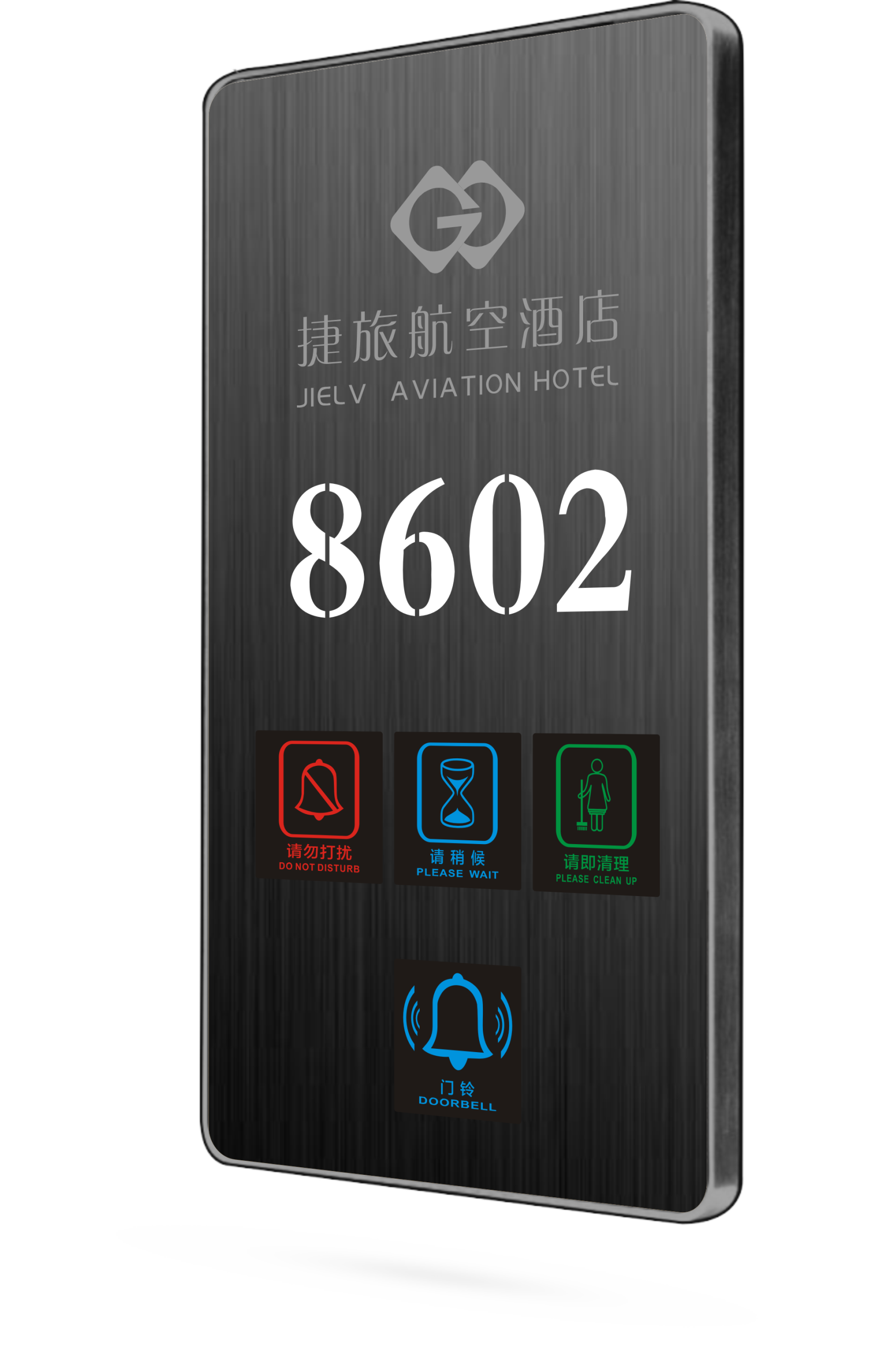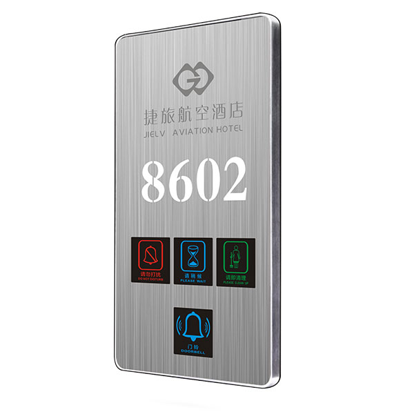 The digital doorplate offers a sophisticated blend of functionality and style. Its high-contrast display ensures room numbers are easily visible, while the touch-sensitive controls allow for intuitive operation. The sleek design complements modern interiors, and customizable features enable hotels to tailor the doorplate to their brand. This electronic doorplate enhances guest experience with its user-friendly interface and elegant appearance.