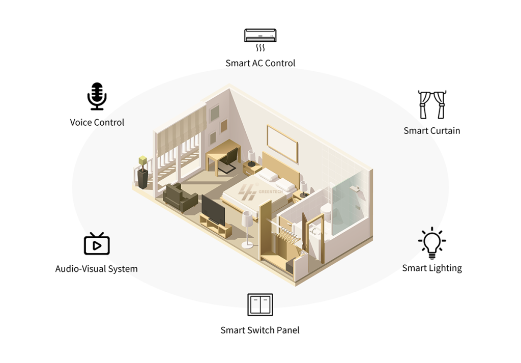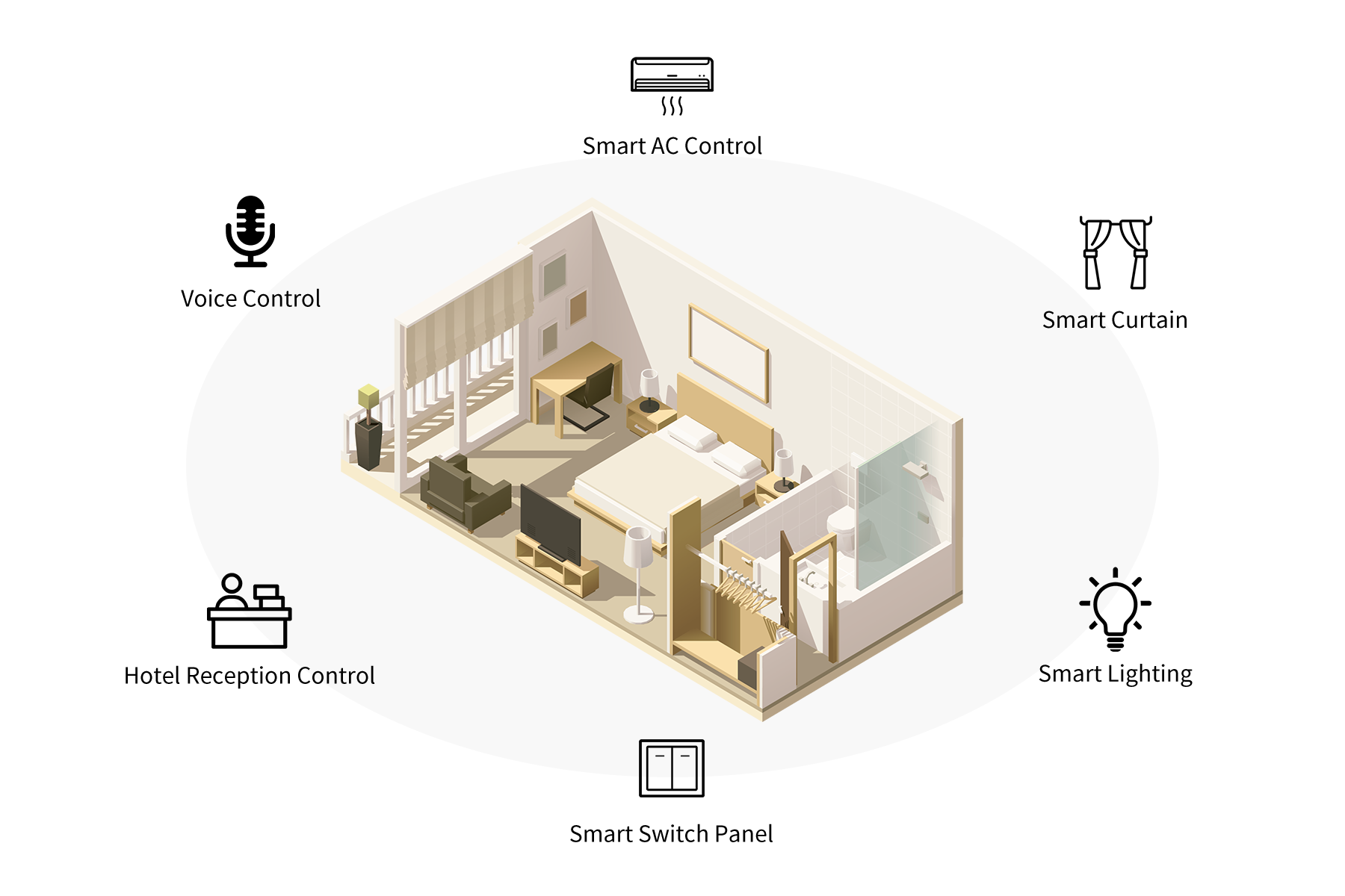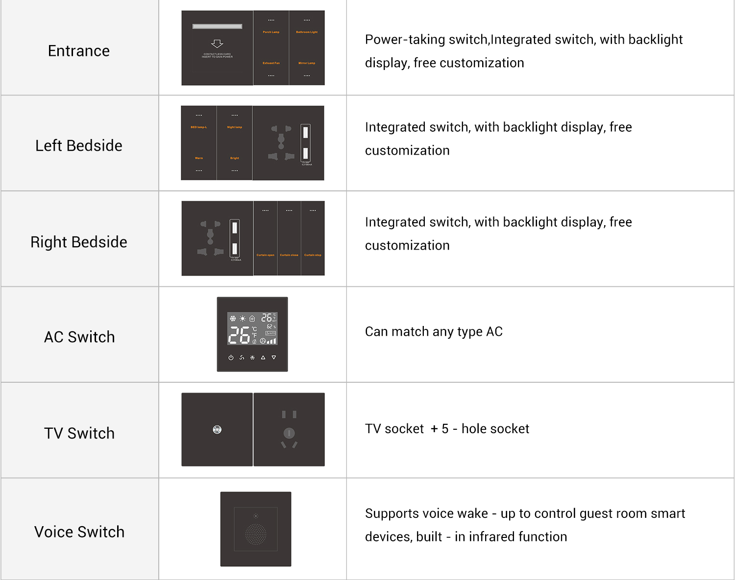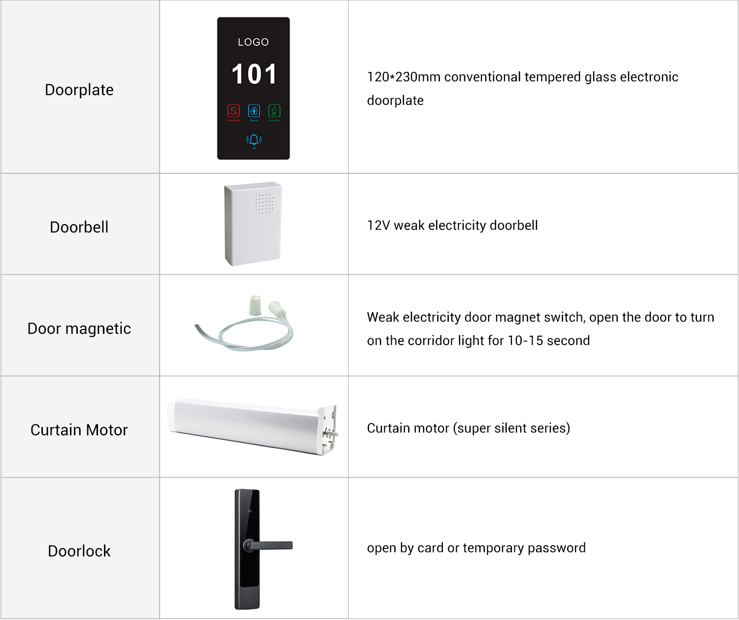 1.Intelligent Welcome,Customize welcome words or open curtains when guests enter the room.