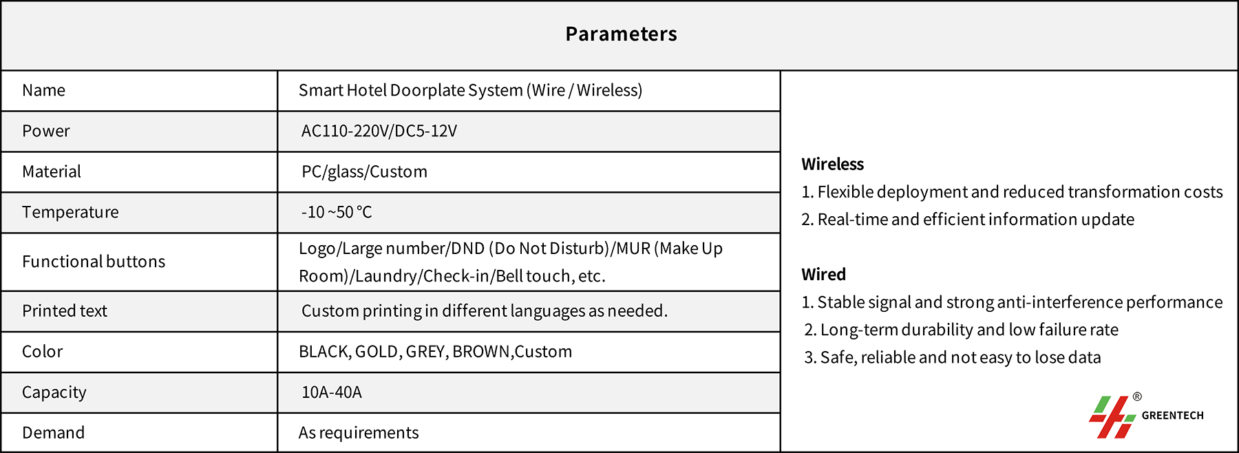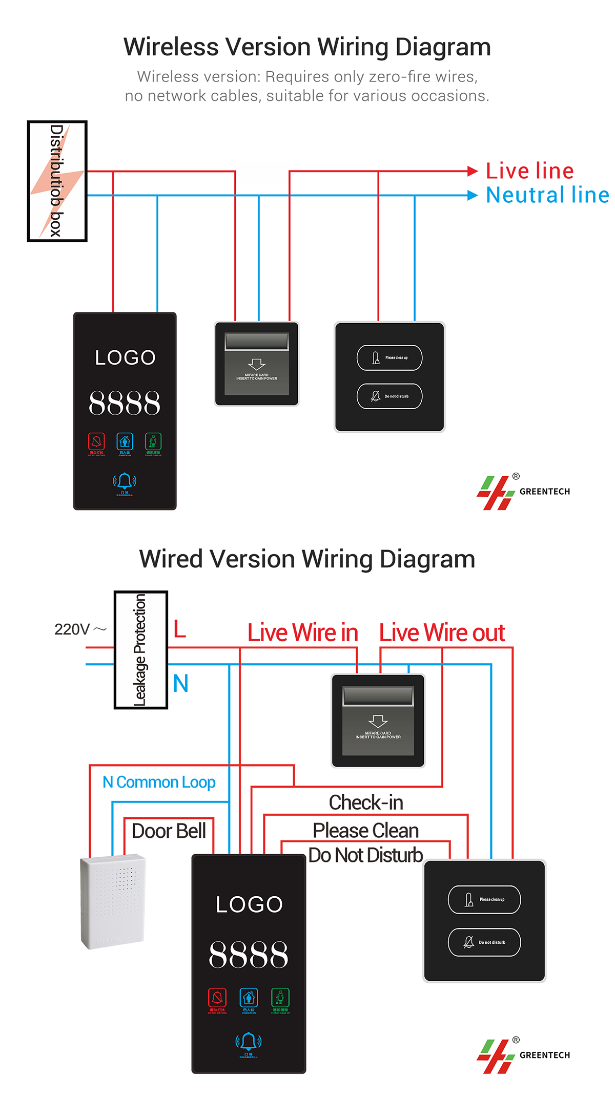 Hotel wired door plate system